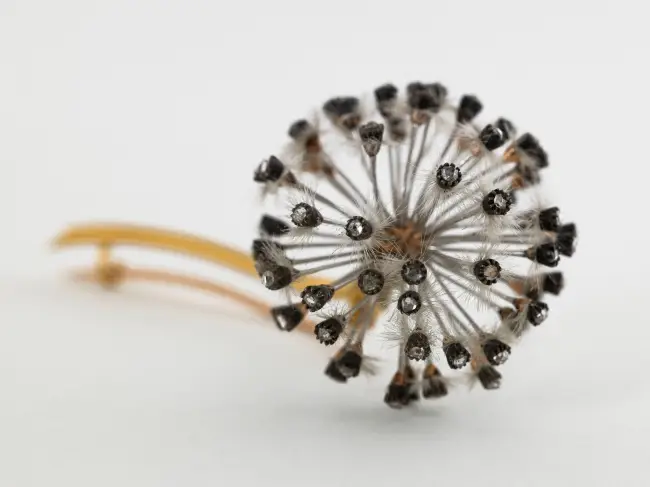 René Lalique também explorava criativamente os elementos naturais. Em um pingente inspirado na anêmona-dos-bosques, flor que se abre ao menor sopro de vento, usou materiais translúcidos para capturar sua fragilidade.