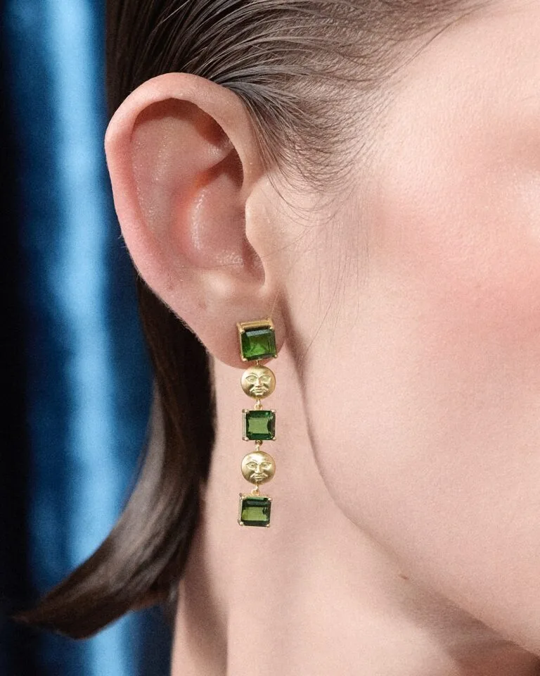 Ouro escovado se encontra com pedras preciosas em anéis, colares, brincos e pingentes. As joias da Hardtt evocam elementos como o Sol Invictus, o Ouroboros e conchas marinhas, transformando arquétipos de poder feminino em design elegante e autoral. Cada peça recebe o nome de personagens ligados ao universo da feiticeira, reforçando a mistura entre moda e misticismo.