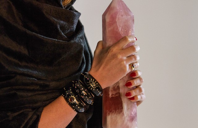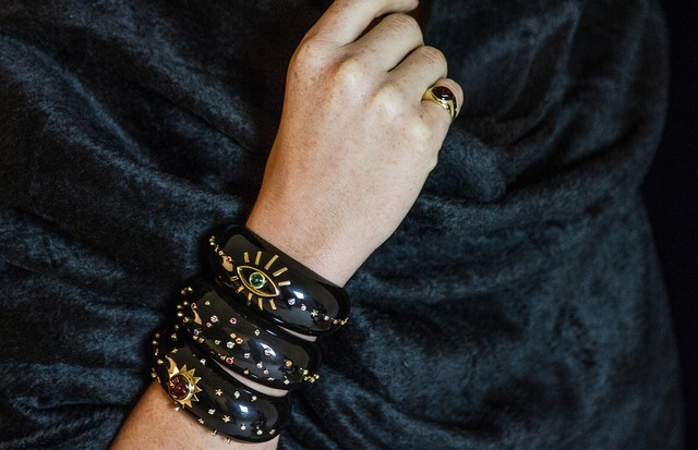 Brincos, colares, braceletes e anéis fazem alusão aos arcanos do baralho, cristalomancia e amuletos de bom